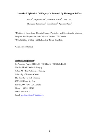 | Title: | Intestinal epithelial cell injury is rescued by hydrogen sulfide |