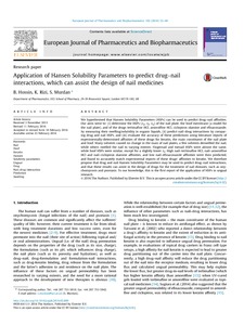 Title: | Application of Hansen Solubility Parameters to predict drug-nail interactions, which can assist the design of nail medicines |
