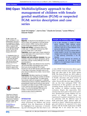 | Title: | Multidisciplinary approach to the management of children with female genital mutilation (FGM) or suspected FGM: service description and case series |