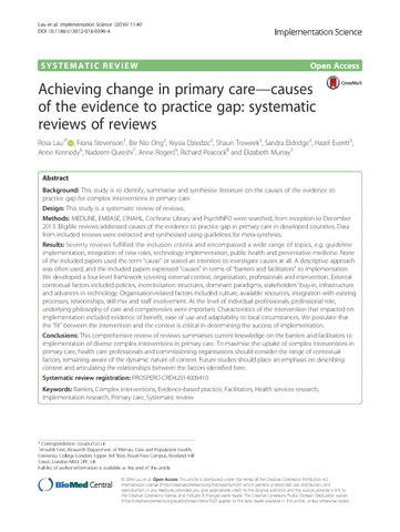 Title: | Achieving change in primary care-causes of the evidence to practice gap: systematic reviews of reviews |
