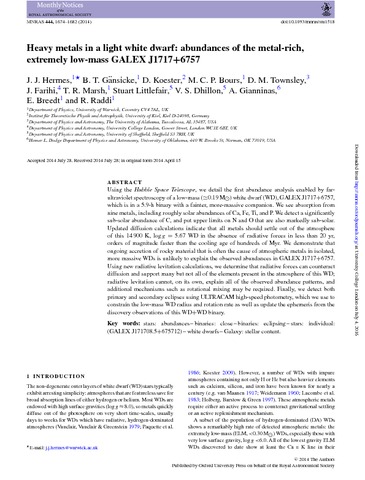 | Keywords: | stars: abundances, binaries: close, binaries: eclipsing, stars: individual: (GALEX J171708.5+675712), white dwarfs, Galaxy: stellar content |