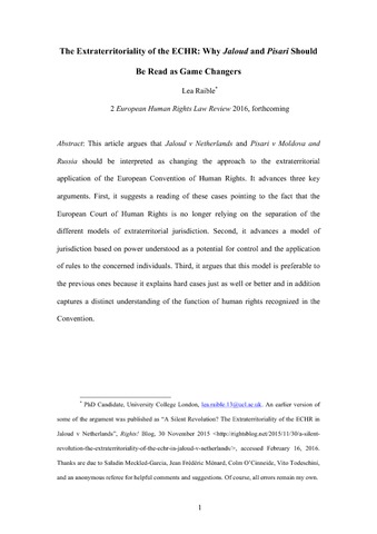 Title: | The Extraterritoriality of the ECHR: Why Jaloud and Pisari Should be Read as Game Changers |