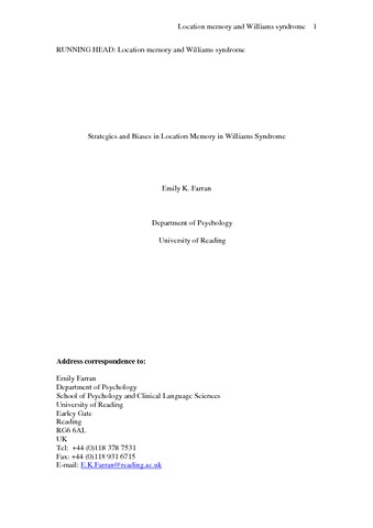 | Title: | Strategies and biases in location memory in Williams syndrome |
