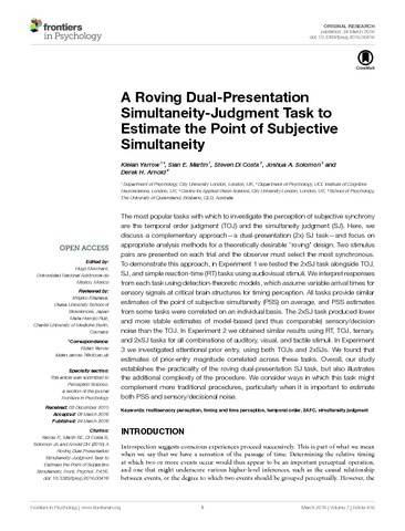Title: | A roving dual-presentation simultaneity-judgment task to estimate the point of subjective simultaneity |