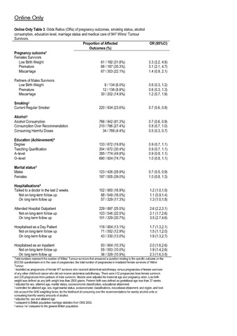 Pritchard-Jones_Risk of adverse health and social_Online Only - Table 3.pdf - Accepted Version Download (166kB) | Preview |