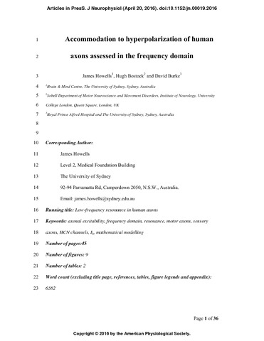 Title: | Accommodation to hyperpolarization of human axons assessed in the frequency domain |