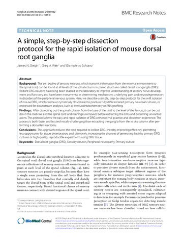 Title: | A simple, step-by-step dissection protocol for the rapid isolation of mouse dorsal root ganglia |