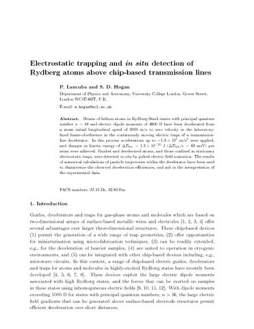 Title: | Electrostatic trapping and in situ detection of Rydberg atoms above chip-based transmission lines |