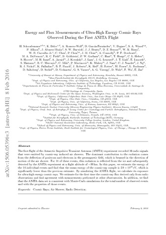 Title: | Energy and flux measurements of ultra-high energy cosmic rays observed during the first ANITA flight |