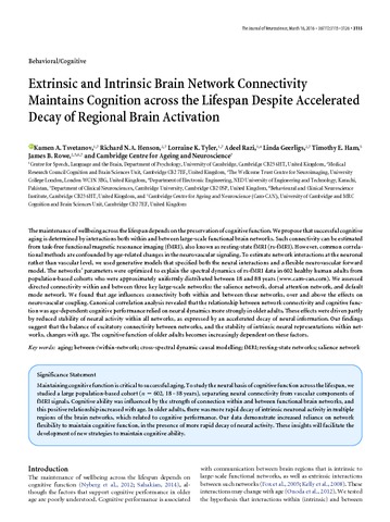 Extrinsic and Intrinsic Brain Network Connectivity Maintains Cognition across the Lifespan Despite Accelerated Decay of Regional Brain Activation.