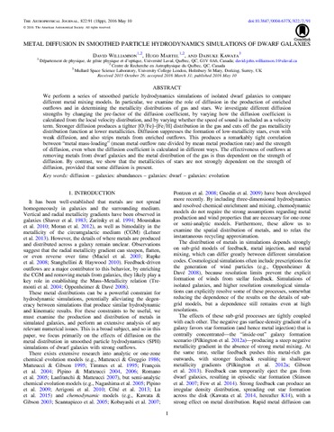 | Keywords: | Science & Technology, Physical Sciences, Astronomy & Astrophysics, Diffusion, Galaxies: Abundances, Galaxies: Dwarf, Galaxies: Evolution, Galactic Chemical Evolution, Star-Forming Galaxies, Cosmological Simulations, Metallicity Distribution, Interstellar-Medium, Elliptic Galaxies, Photochemical Evolution, Intergalactic Medium, Spheroidal Galaxies, Planetary-Nebulae |
