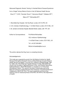 Title: | Advanced diagnostic genetic testing in inherited retinal disease: experience from a single tertiary referral centre in the UK National Health Service |