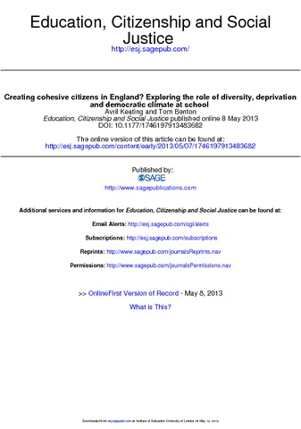 Text (Creating cohesive citizens in England? Exploring the role of diversity, deprivation and democratic climate at school)