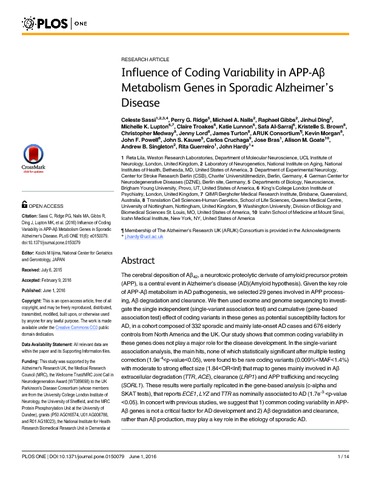 Influence of Coding Variability in APP-Aβ Metabolism Genes in Sporadic Alzheimer's Disease.pdf - Published Version Download (252kB) | Preview |