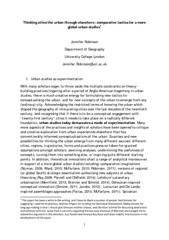 | Title: | Thinking cities through elsewhere: Comparative tactics for a more global urban studies |