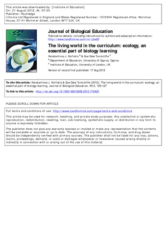 Title: | The living world in the curriculum: ecology, an essential part of biology learning |
