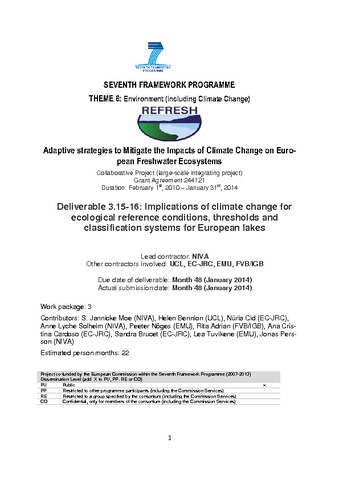 | Title: | Implications of climate change for ecological reference conditions, thresholds and classification systems for European lakes |