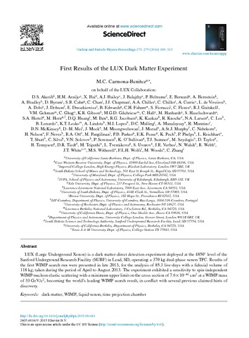 Keywords: | dark matter, WIMP, liquid xenon, time projection chamber |