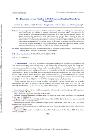 Title: | The Linearized Inverse Problem in Multifrequency Electrical Impedance Tomography |