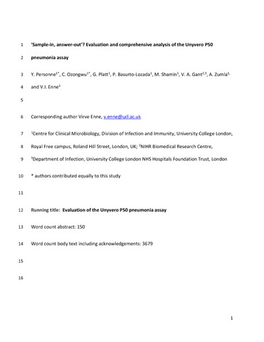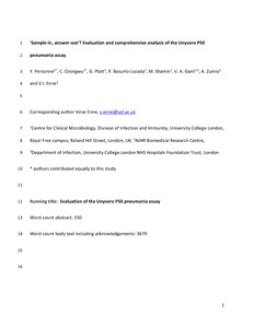 'Sample-in, answer-out'? Evaluation and comprehensive analysis of the Unyvero P50 pneumonia assay.