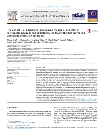 The annual Hajj pilgrimage-minimizing the risk of ill health in pilgrims from Europe and opportunity for driving the best prevention and health promotion guidelines.