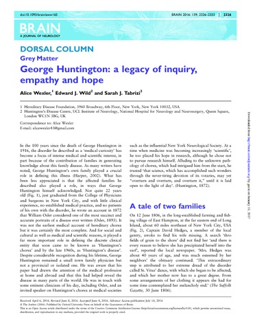 Title: | George Huntington: a legacy of inquiry, empathy and hope |