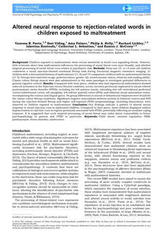 Title: | Altered neural response to rejection-related words in children exposed to maltreatment. |