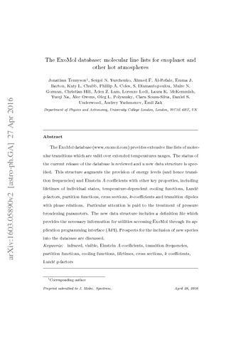 Title: | The ExoMol database: Molecular line lists for exoplanet and other hot atmospheres |