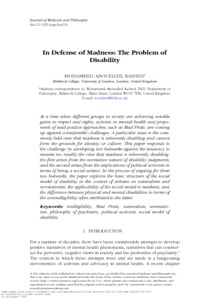 At a time when different groups in society are achieving notable gains in respect and rights, activists in mental health and proponents of mad positive approaches, such as Mad Pride, are coming up against considerable challenges. A particular issue is the commonly held view that madness is inherently disabling and cannot form the grounds for identity or culture. This paper responds to the challenge by developing two bulwarks against the tendency to assume too readily the view that madness is inherently disabling: the first arises from the normative nature of disability judgments, and the second arises from the implications of political activism in terms of being a social subject. In the process of arguing for these two bulwarks, the paper explores the basic structure of the social model of disability in the context of debates on naturalism and normativism, the applicability of the social model to madness, and the difference between physical and mental disabilities in terms of the unintelligibility often attributed to the latter.