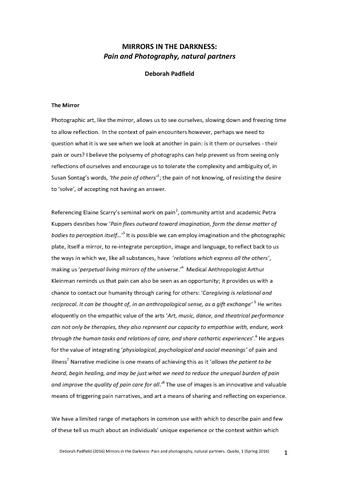 | Title: | Mirrors in the Darkness: Pain and Photography, natural partners |