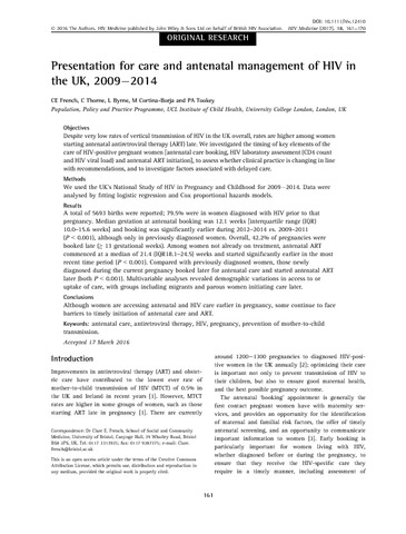 | Title: | Presentation for care and antenatal management of HIV in the UK, 2009-2014 |