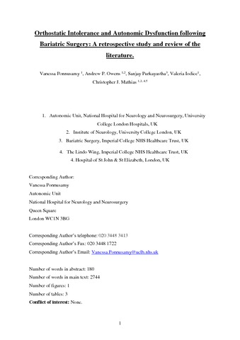 Title: | Orthostatic intolerance and autonomic dysfunction following bariatric surgery: A retrospective study and review of the literature |