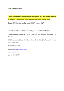 Title: | Chemical ultraviolet absorbers topically applied in a skin barrier mimetic formulation remain in the outer stratum corneum of porcine skin |