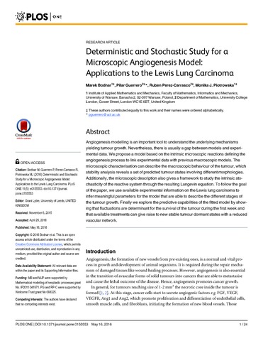 | Title: | Deterministic and stochastic study for a microscopic angiogenesis model: applications to the Lewis lung carcinoma |