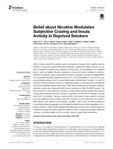 Belief about Nicotine Modulates Subjective Craving and Insula Activity in Deprived Smokers.