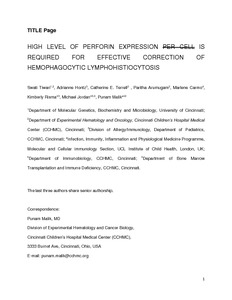 Title: | High Level of Perforin Expression Is Required for Effective Correction of Hemophagocytic Lymphohistiocytosis |