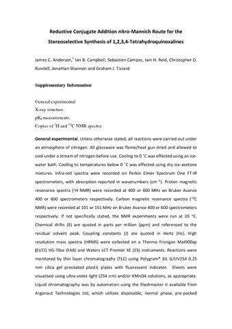 Title: | Reductive conjugate addition nitro-Mannich route for the stereoselective synthesis of 1,2,3,4-tetrahydroquinoxalines |