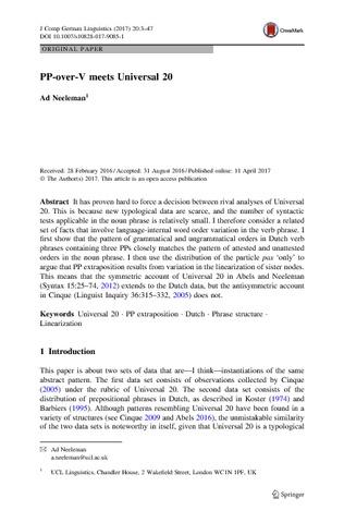 Keywords: | Universal 20 PP extraposition, Dutch, Phrase structure, Linearization |