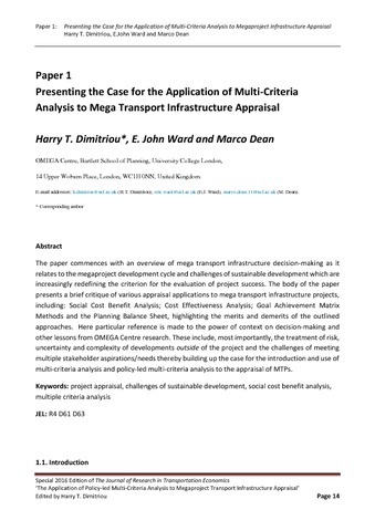 Title: | Presenting the case for the application of multi-criteria analysis to mega transport infrastructure project appraisal |