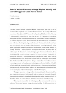Title: | Russian National Security Strategy: Regime Security and Elite’s Struggle for ‘Great Power’ Status |
