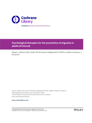 Title: | Psychological therapies for the prevention of migraine in adults [Protocol] |