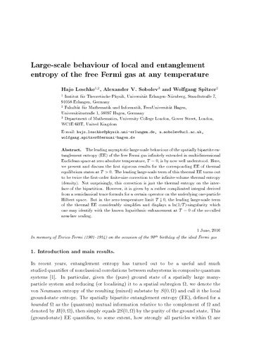 | Keywords: | Science & Technology, Physical Sciences, Physics, Multidisciplinary, Physics, Mathematical, Physics, entanglement entropy, local entropy, free Fermi gas in equilibrium, semiclassical trace formulas, Wiener-hopf Operators. |