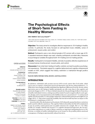 Title: | The Psychological Effects of Short-Term Fasting in Healthy Women. |