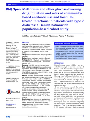 Metformin and other glucose-lowering drug initiation and rates of community-based antibiotic use and hospital-treated infections in patients with type 2 diabetes: a Danish nationwide population-based cohort study.