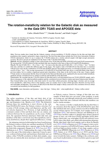Title: | The rotation-metallicity relation for the Galactic disk as measured in the Gaia DR1 TGAS and APOGEE data |