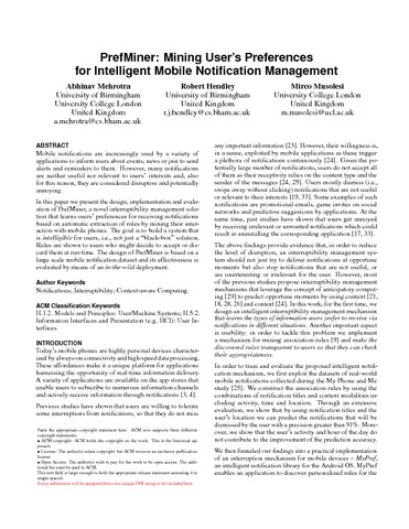 | Title: | PrefMiner: Mining User's Preferences for Intelligent Mobile Notification Management |