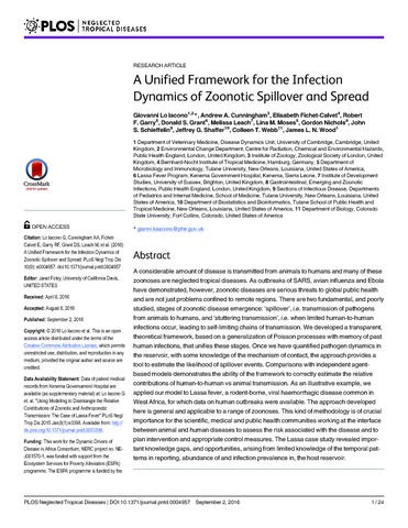 A Unified Framework for the Infection Dynamics of Zoonotic Spillover and Spread.