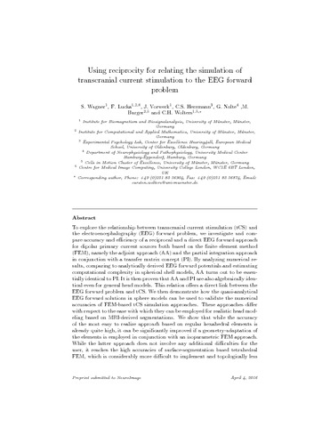 | Title: | Using reciprocity for relating the simulation of transcranial current stimulation to the EEG forward problem |