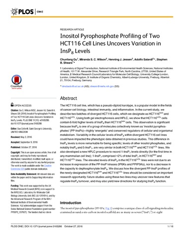 Title: | Inositol Pyrophosphate Profiling of Two HCT116 Cell Lines Uncovers Variation in InsP8 Levels |