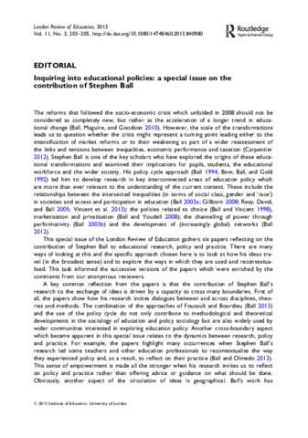 Inquiring into educational policies: a special issue on the contribution of Stephen Ball.